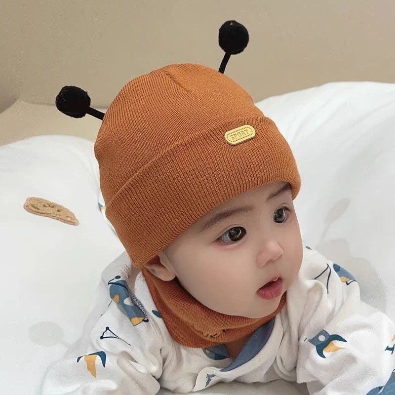 尼多熊宝宝帽子秋冬帽围一体儿童护耳帽保暖婴儿帽冬季加厚毛线帽