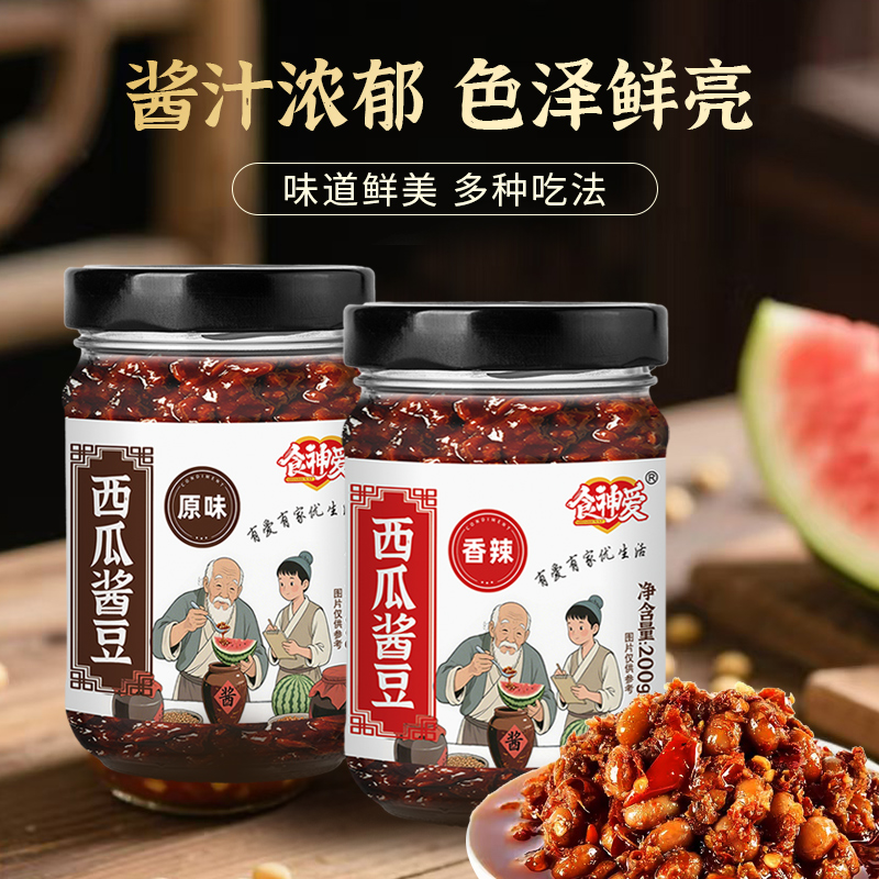 西瓜酱豆200g原味+香辣西瓜酱豆下饭菜首选炒菜香辣做酱