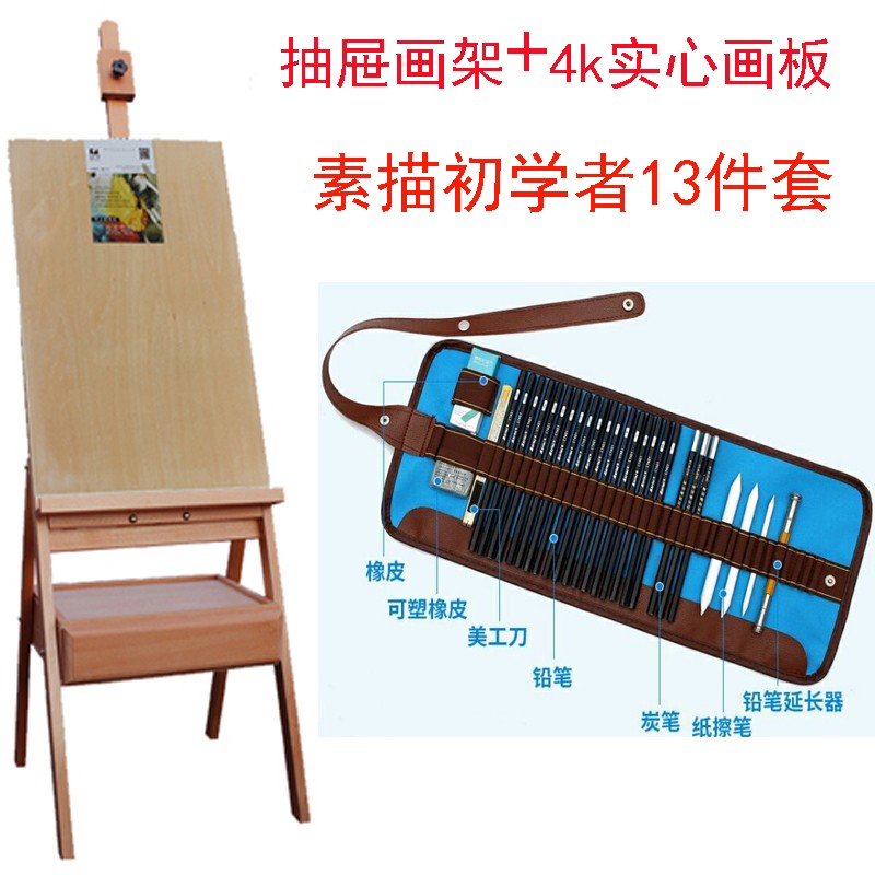 实木制画架支架式抽屉素描画架画板折叠升降多功能画架成人儿童