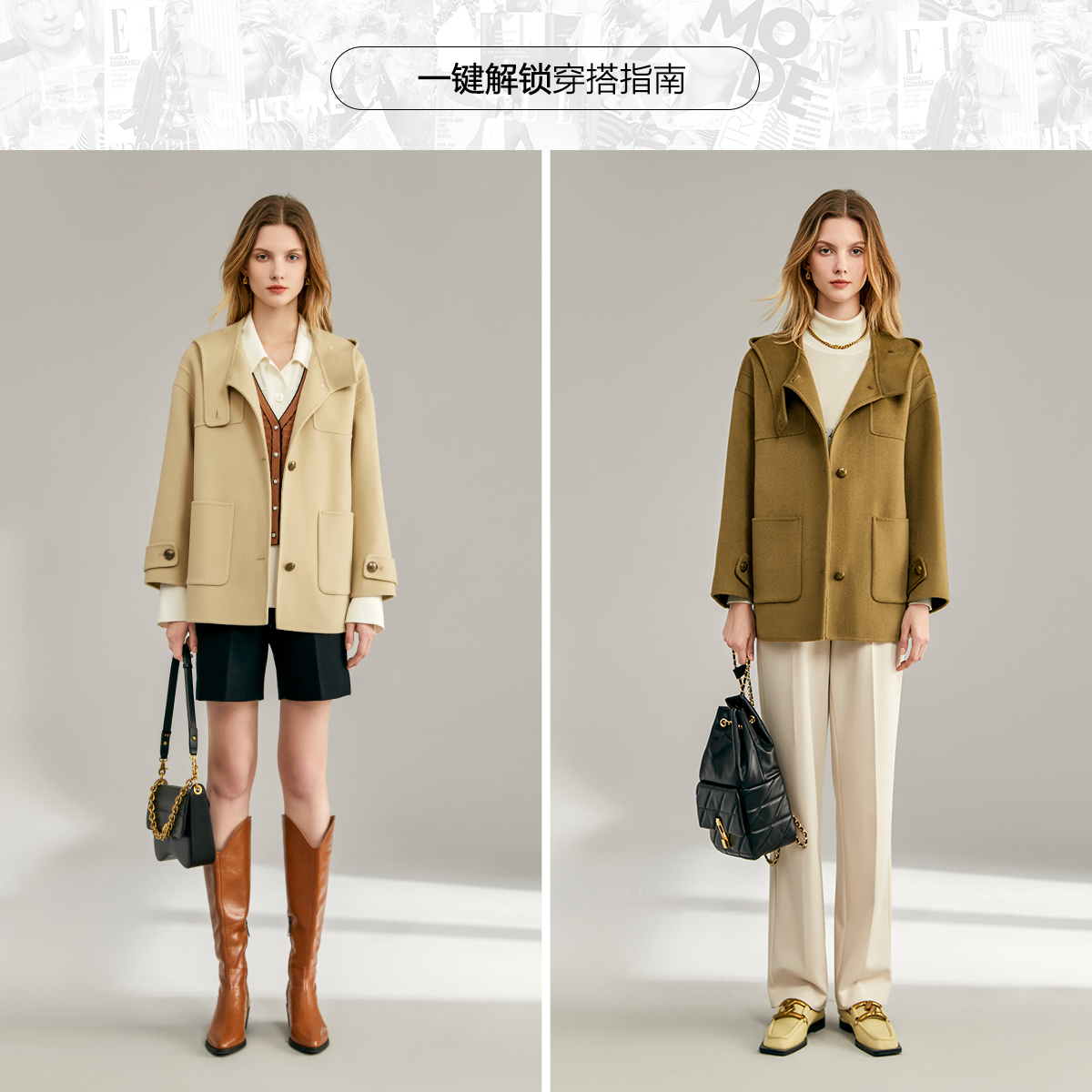 双面羊绒浴袍短款斗篷大衣女小个子2025秋冬新款连帽羊毛毛呢外套