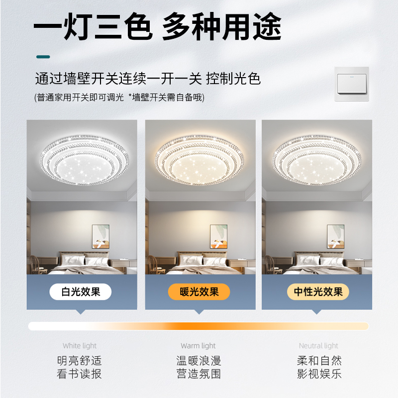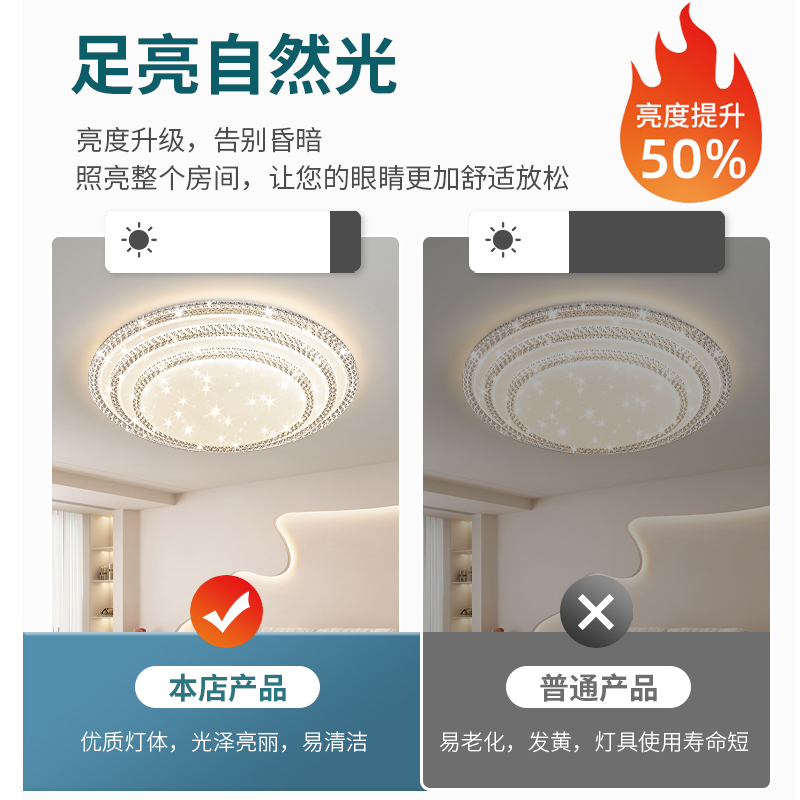 卧室灯吸顶灯主卧2025新款简约现代水晶led客厅灯房间灯超亮灯具