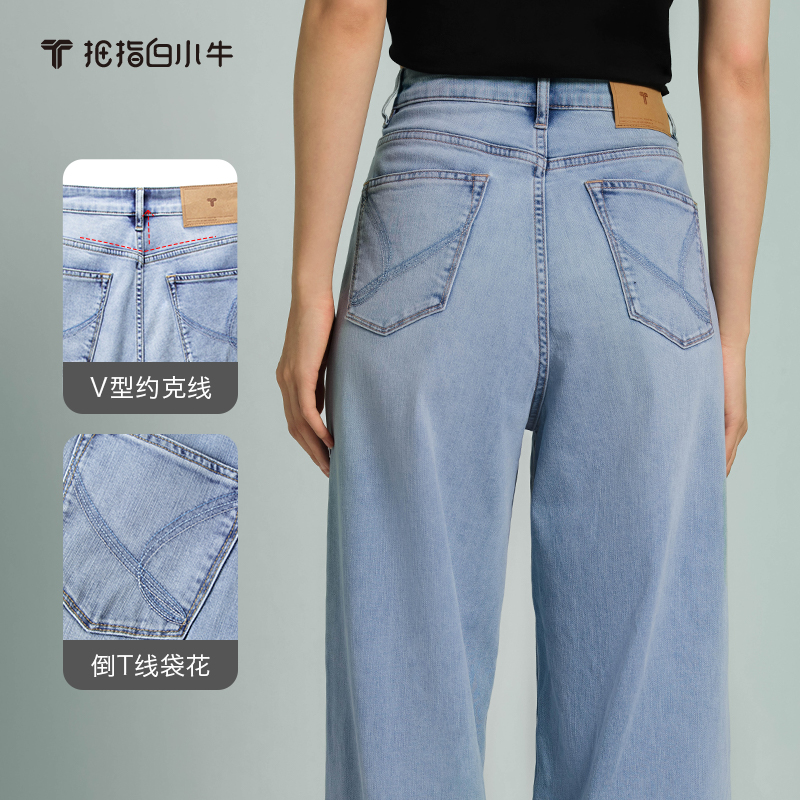 拇指白小牛2025夏新款浅蓝女士牛仔裤阔腿裤长裤肤感舒适包容腿型