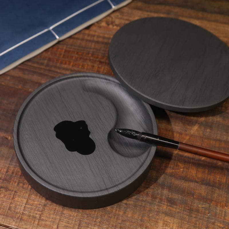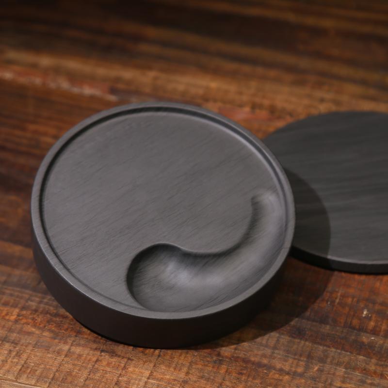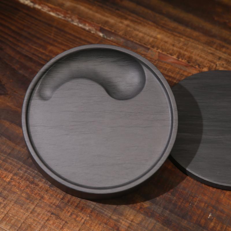 安徽砚台 文房四宝砚台原石天然带盖毛笔书法用品练习学生初学者歙砚台5寸小楷砚太极砚小砚台水波纹清仓