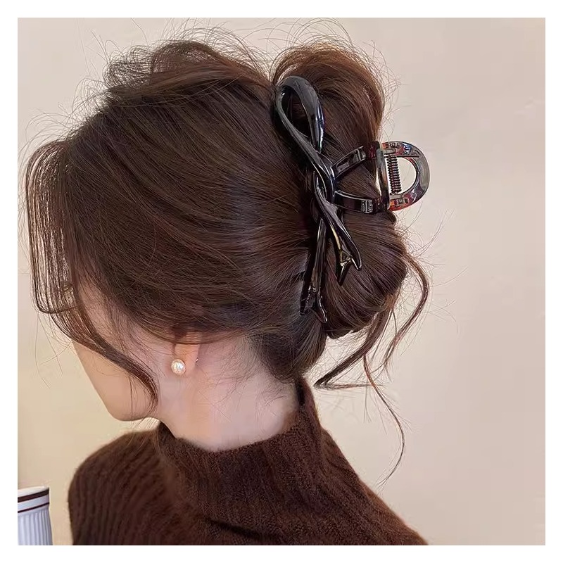 简约飘带蝴蝶结抓夹大号发夹女2024新款高级感后脑勺鲨鱼夹子发饰