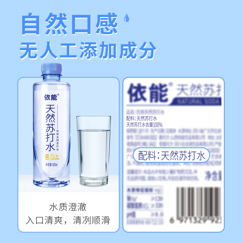 依能天然苏打水饮用水弱碱性15瓶装PH8.0无人工添加非饮料包邮