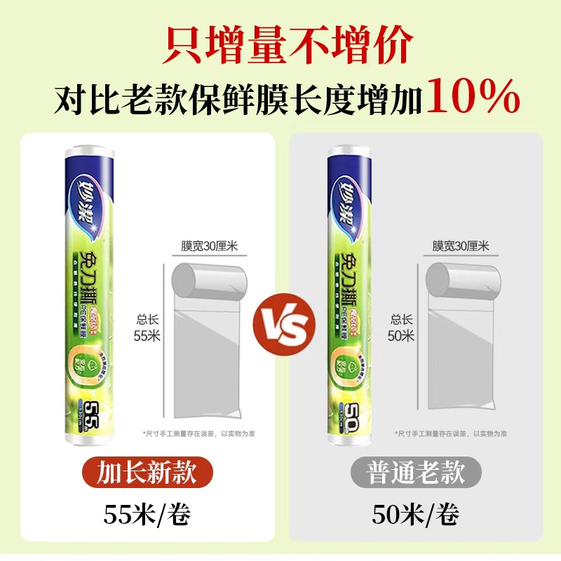 妙洁保鲜膜点断式免刀撕大卷家用耐高温食品级专用一次性套微波炉