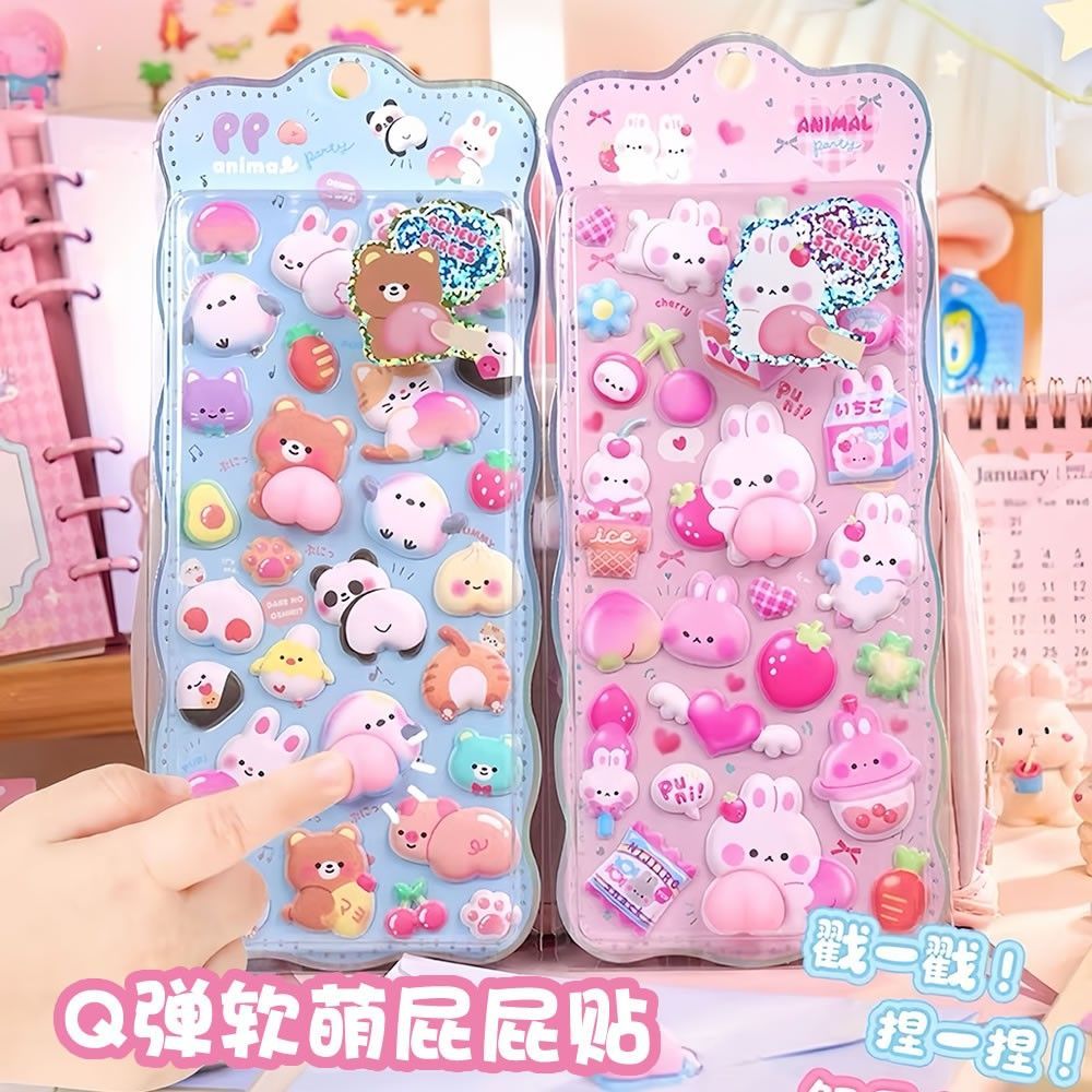 软萌屁屁立体解压贴纸浮雕儿童动物可爱女孩手机泡泡装饰奖励贴画