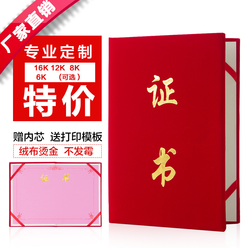 红绒面荣誉证书外壳得奖颁奖状封面收藏协会社员会员证书定制包邮