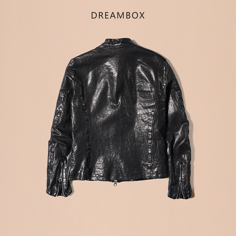 dreambox钧博高端马皮修身帅气真皮皮衣重水洗复古做旧机车皮夹克