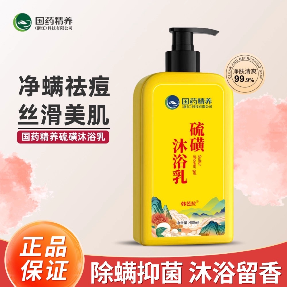 国药硫磺除螨沐浴露祛后背痘疙瘩止痒去螨虫液体香皂持久留香清洁