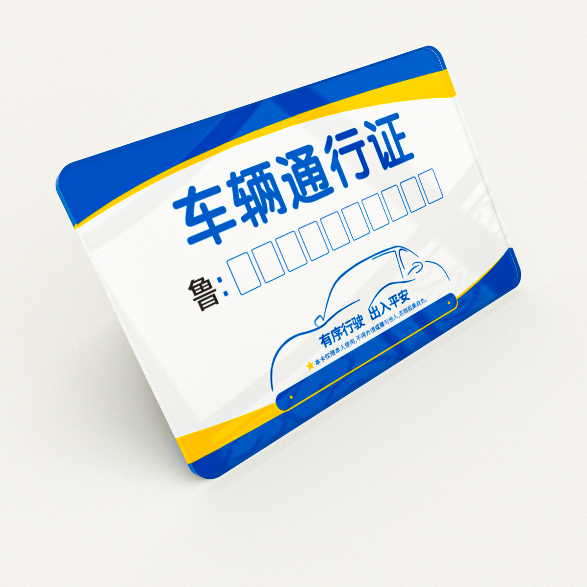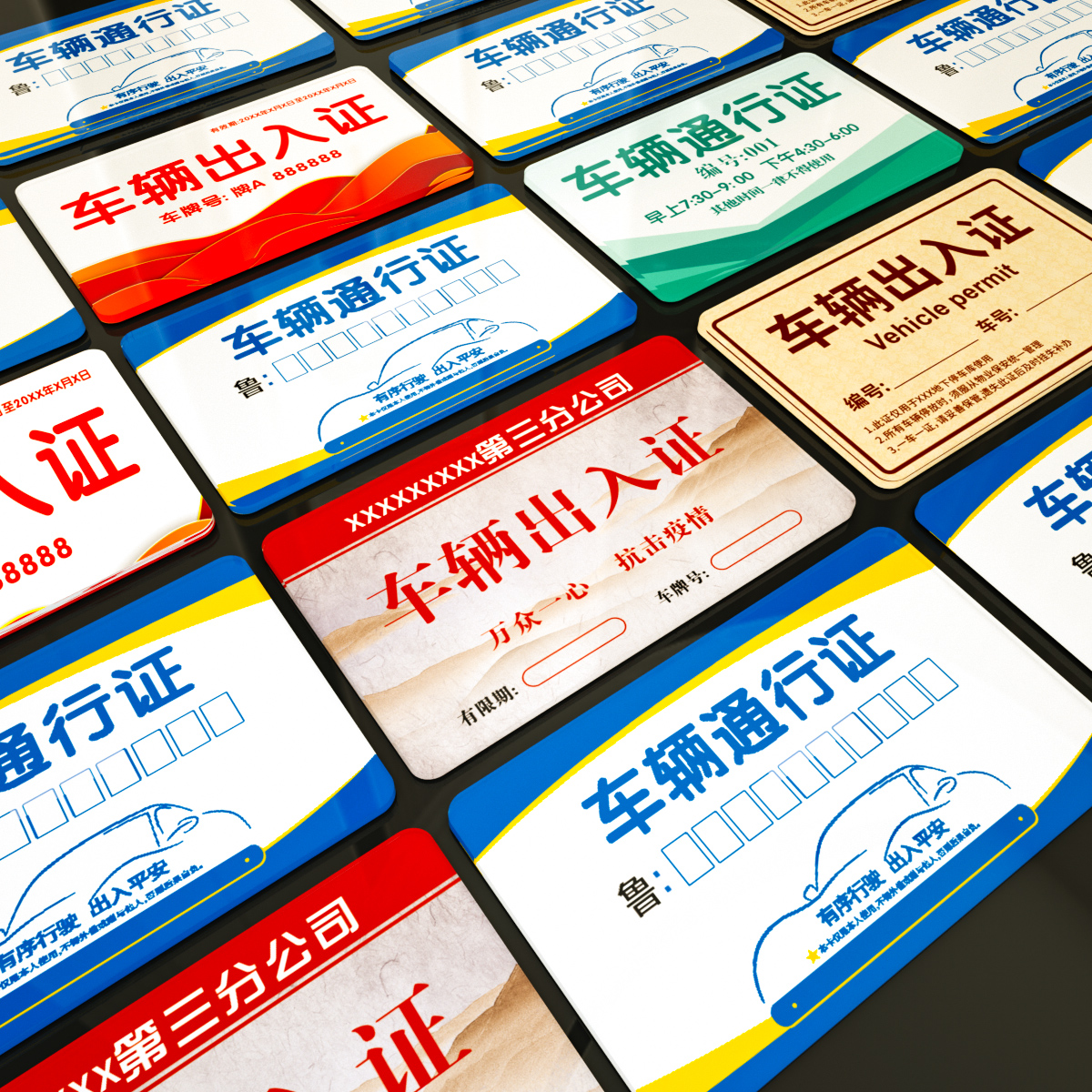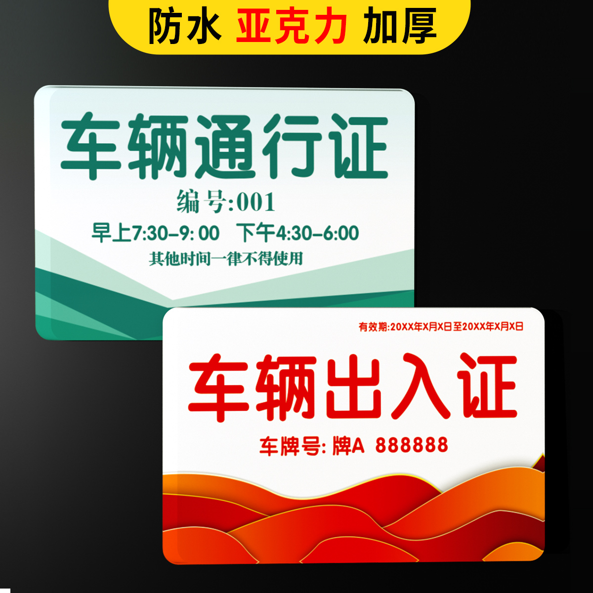 车辆通行证标识牌亚克力牌车辆出入证小区物业单位防疫停车场泊车牌通行卡墙贴粘贴自带背胶定制订做