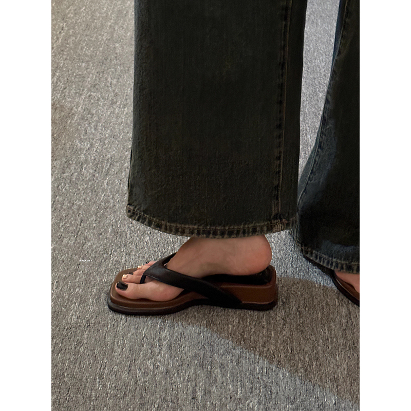 韩系超火复古坡跟夹脚人字拖女外穿2025夏季新款休闲度假沙滩凉拖