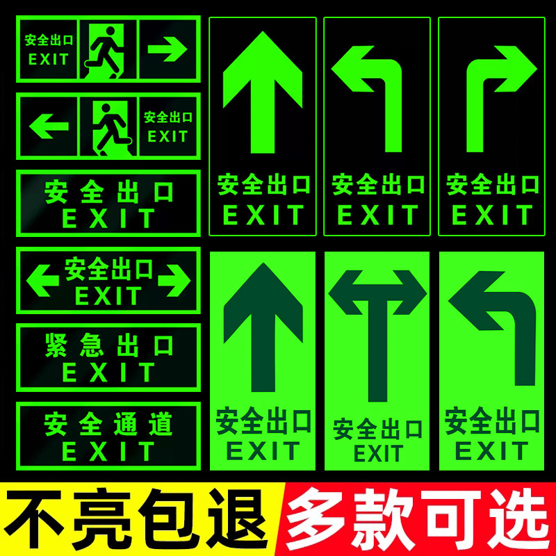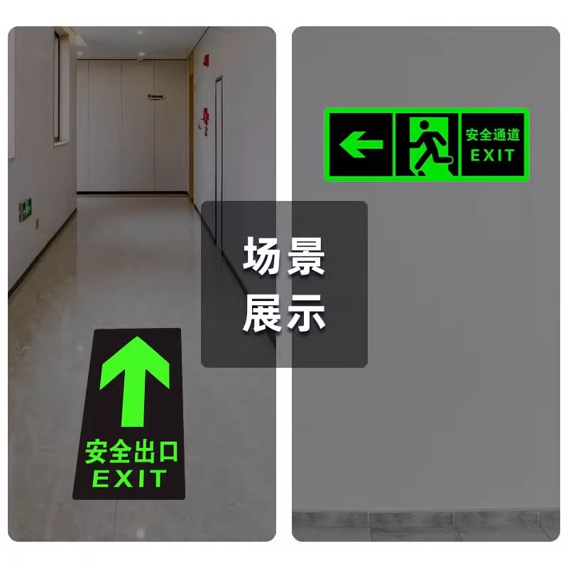 楼道安全出口标识牌疏散警示贴安全消防通道标示标志指示牌墙贴荧光夜光免接电左右直行箭头自粘式提示牌贴纸