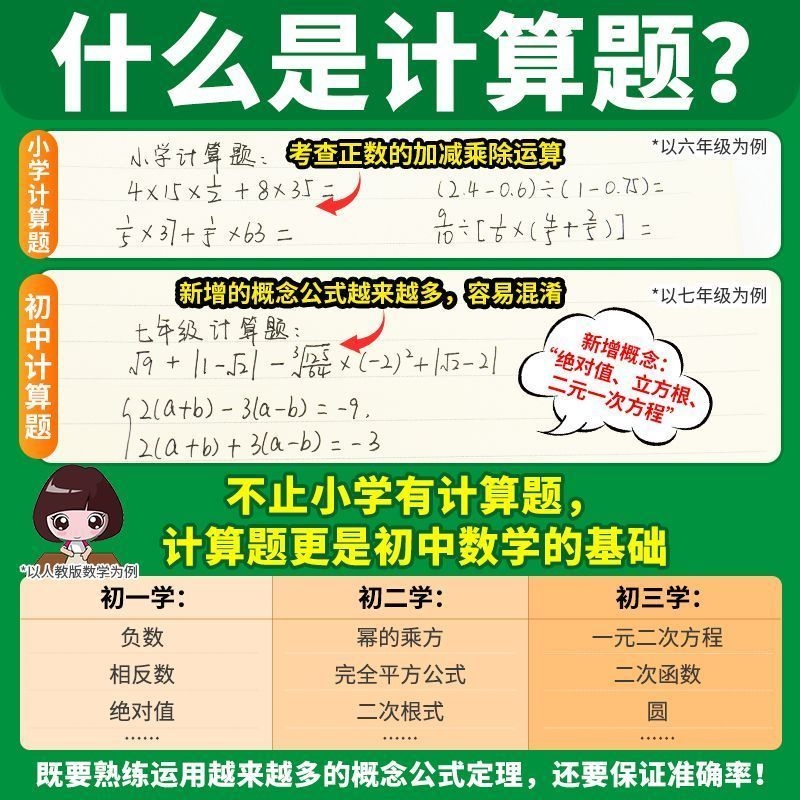 一本初中数学压轴题计算题同步七八九年级数学计算题满分训练人教北师苏科版中考数学训练初中数学思维训练初中数学必刷题中学教辅