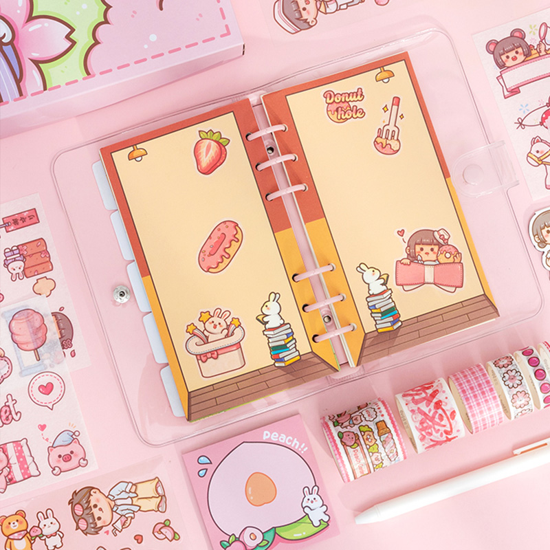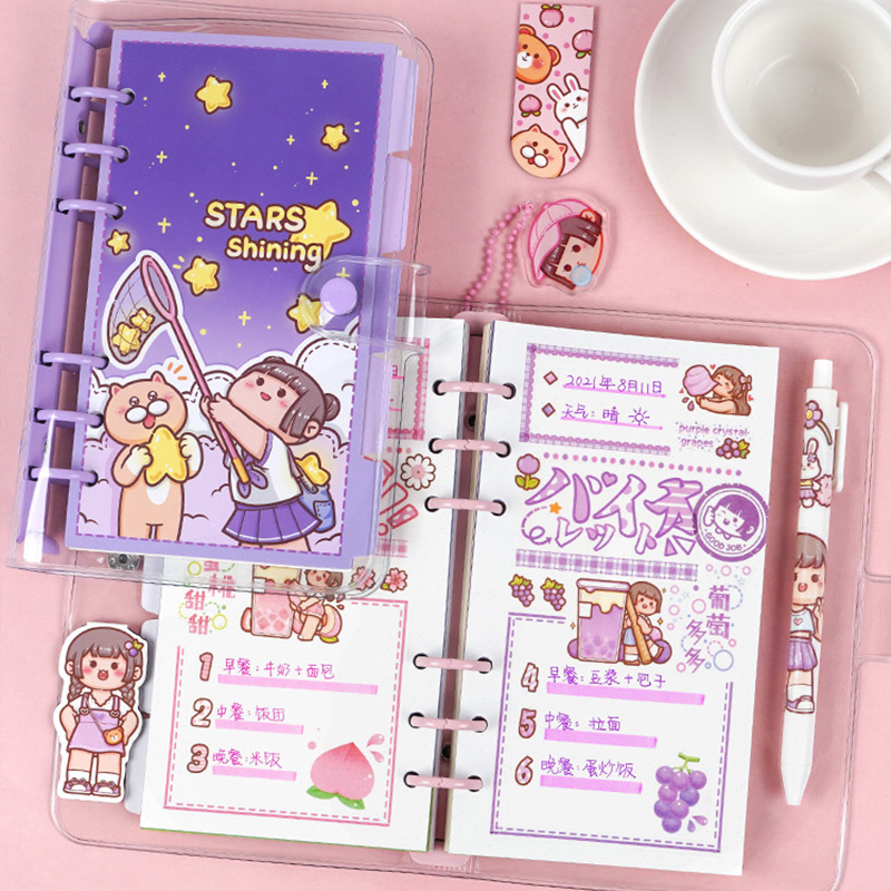 小麻薯手帐本套装少女心手帐礼女生用活页笔记本而开网红简约ins手帐素材工具材料全套大礼包手杖笔记本精致