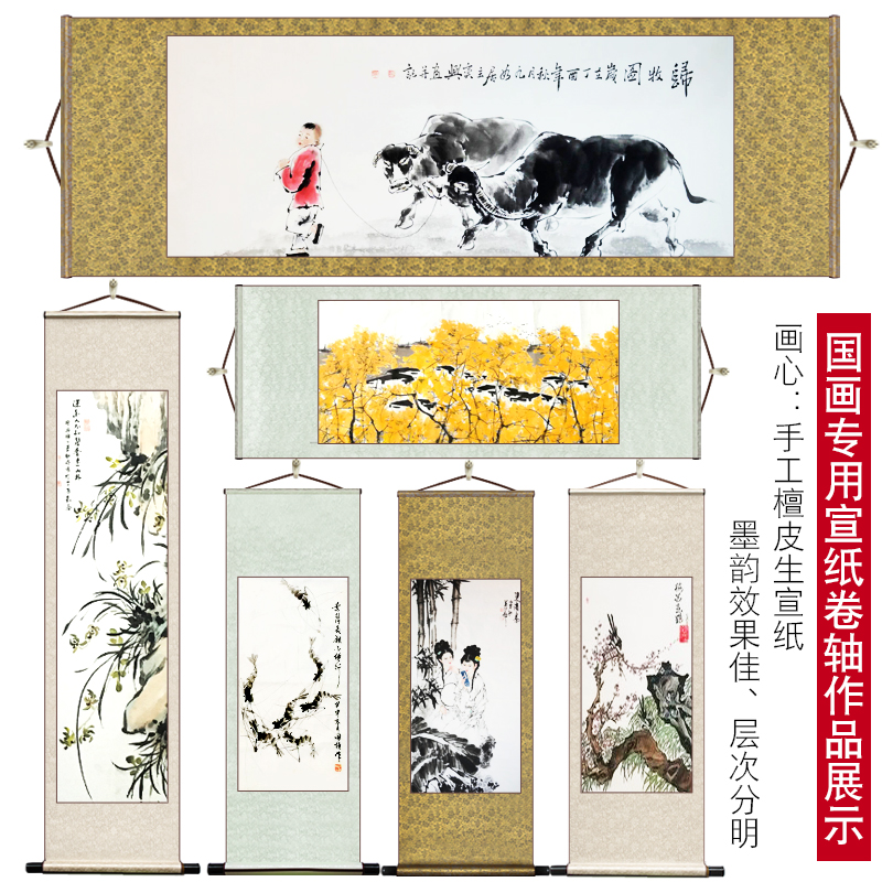 卷轴空白书法挂画宣纸免装裱挂轴画轴字画书画作品纸画画毛笔字生宣国画专用纸半生半熟仿古横轴立轴定制批发