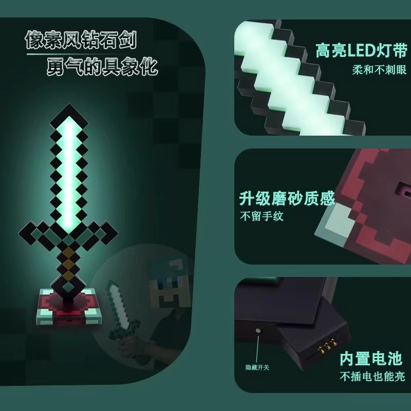 我的世界钻石剑模型台灯摆件mc火把灯矿石小夜灯六一儿童节礼物