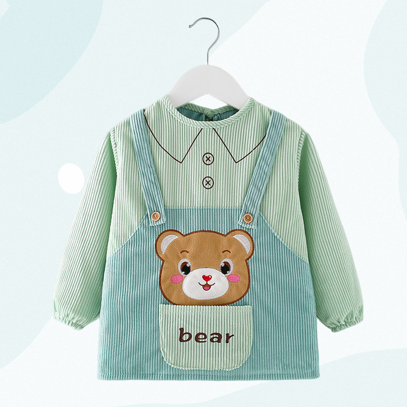 婧麒宝宝罩衣秋冬长袖儿童围兜防水防脏吃饭反穿衣婴儿围裙外穿