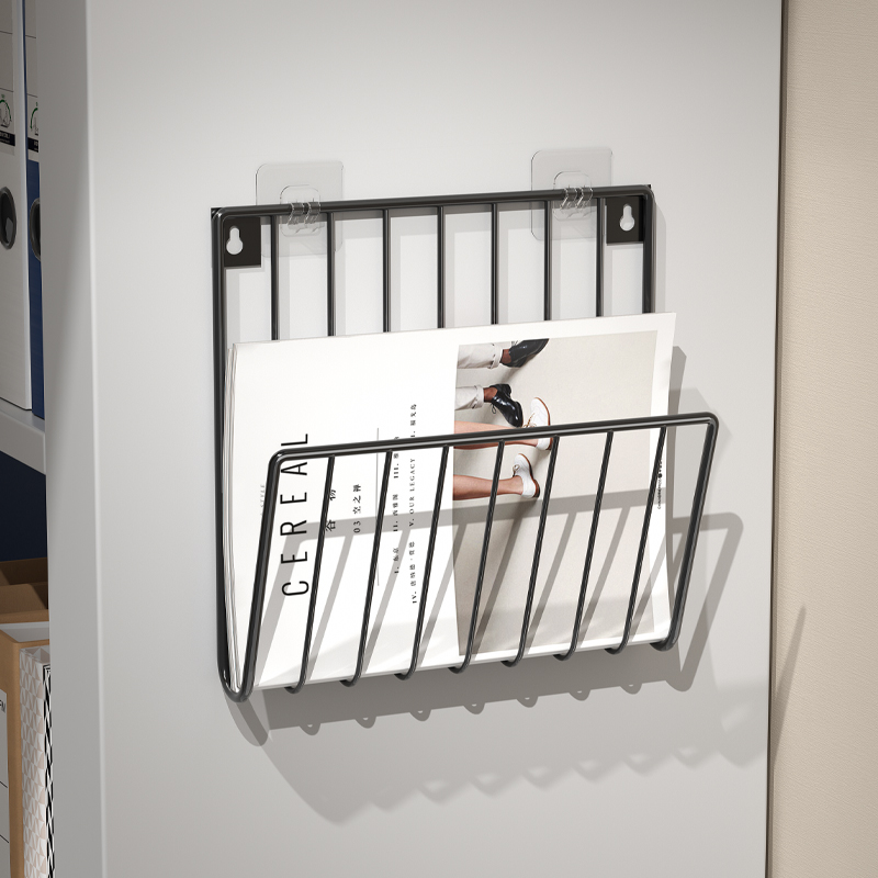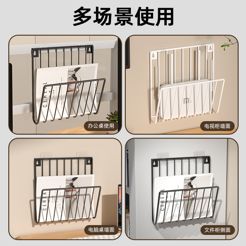 铁艺壁挂文件框书报展示架简约白色附无痕粘贴整理书报架文件家庭办公室使用无需工具安装稳固收纳有序置物架