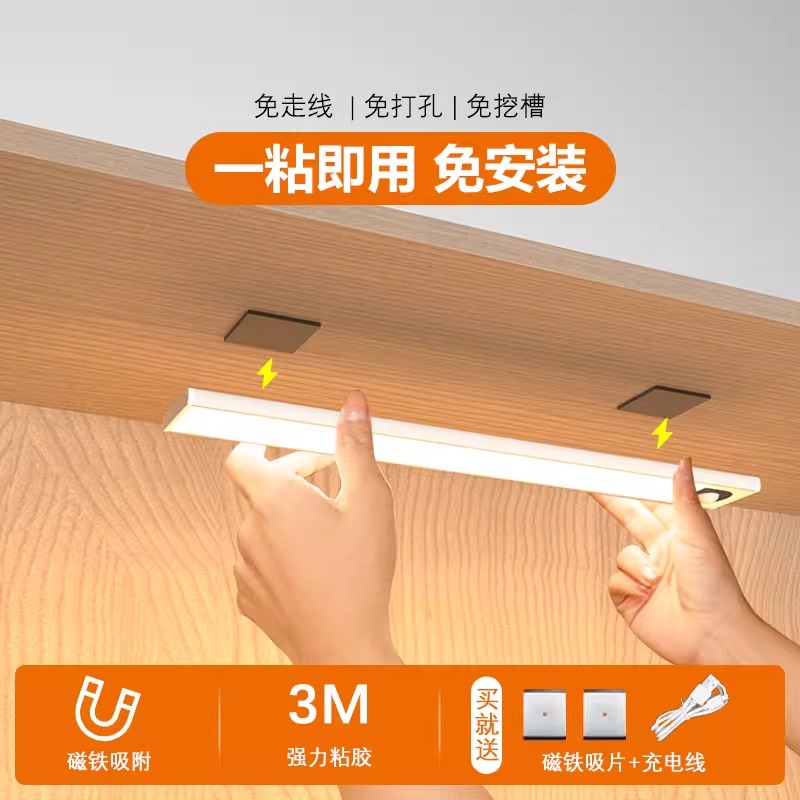 led橱柜灯充电款人体感应灯条衣柜灯卧室睡眠宿舍小夜灯磁吸长条