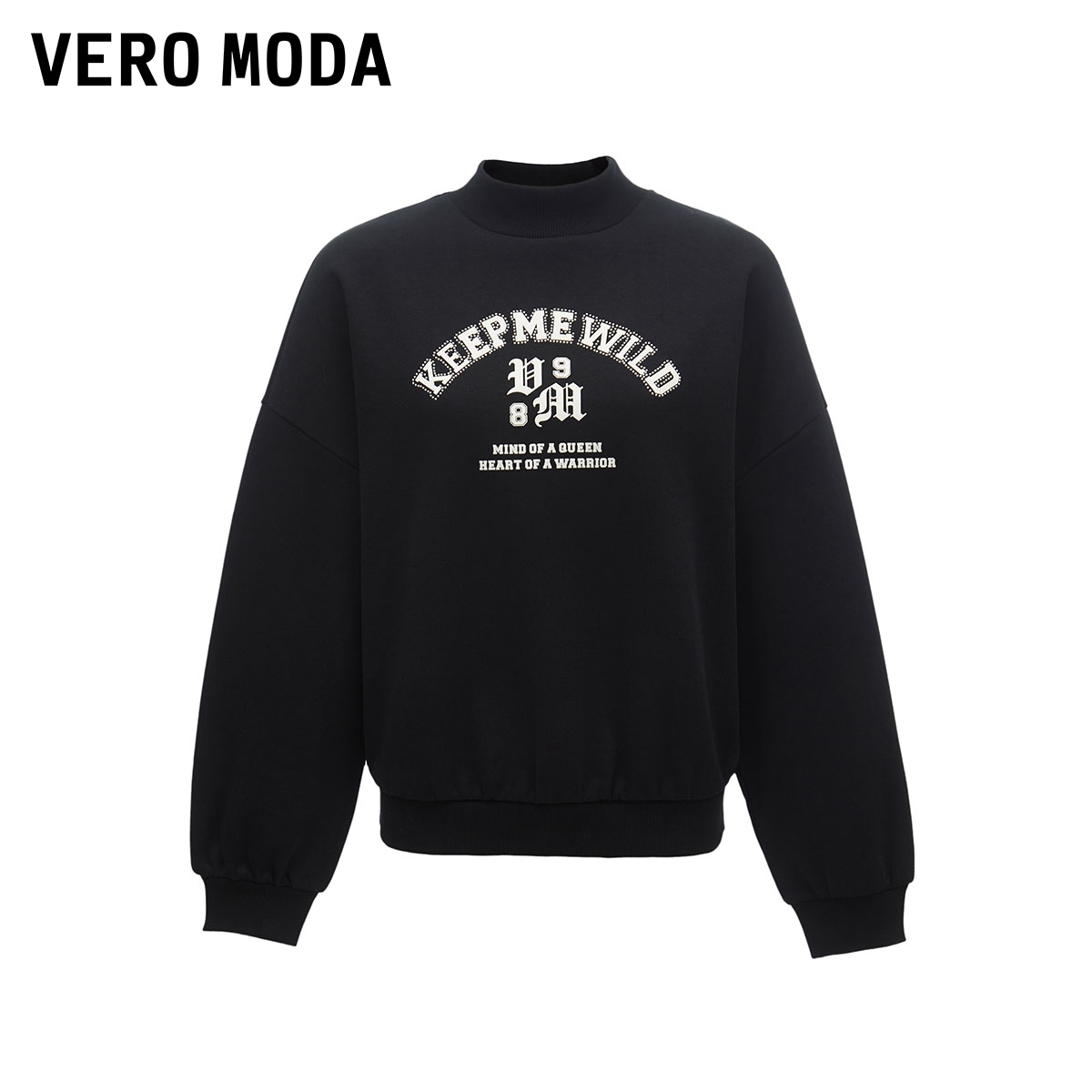 Vero Moda奥莱卫衣女秋季新款半高领宽松廓形字母休闲街头上衣