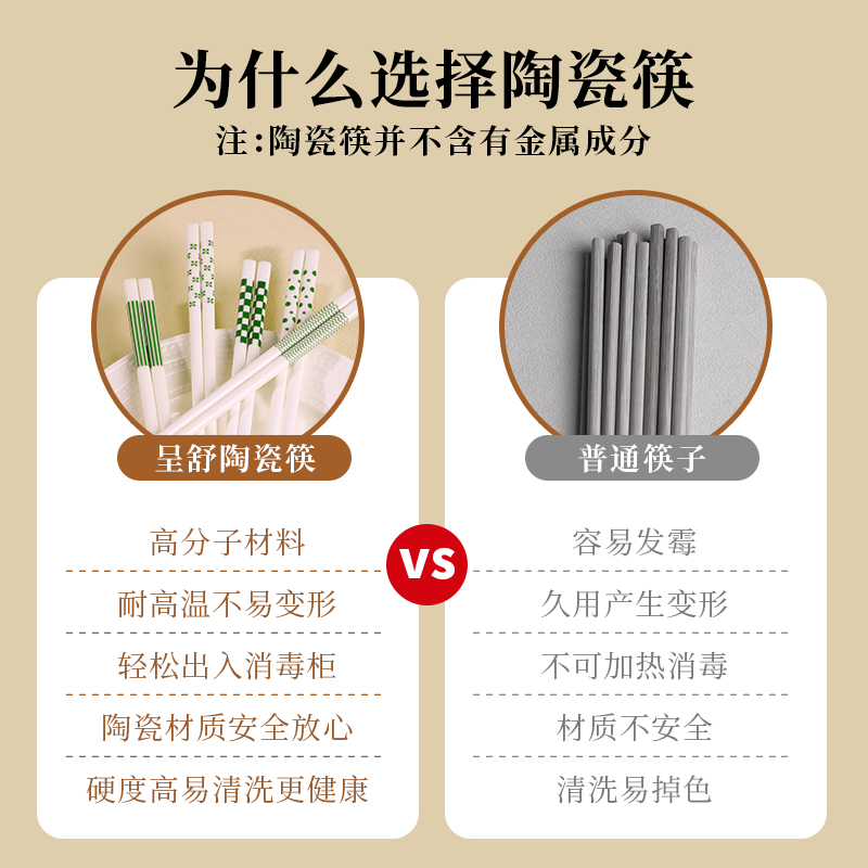 高档陶瓷筷子家庭抗菌防霉耐高温防滑餐具家用一人一筷分餐筷轻奢