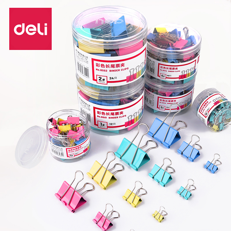 得力文具彩色长尾夹小中大号燕尾夹凤尾夹票夹书铁夹子办公用品