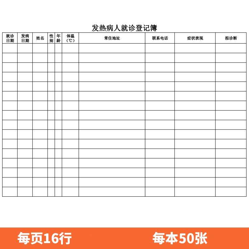 发热病人就诊登记本门诊发热病人就诊登记表发热病人就诊记录本医务室发热病人就诊登记表发热患者就诊登记簿