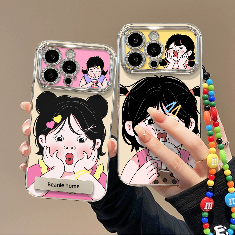 搞怪女孩适用苹果16手机壳15电镀14大视窗iPhone13保护套12硅胶xr全包Xs防摔pro镜头max新款创意78卡通plus女
