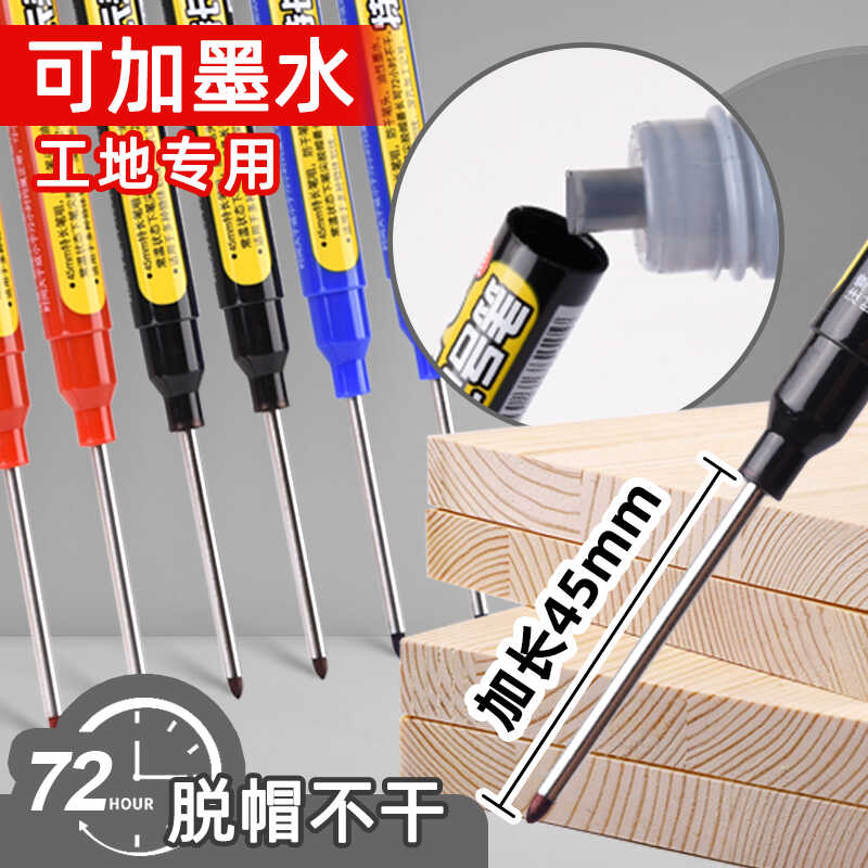 长头记号笔可加墨油性防水防油不掉色加长深孔瓷砖木工标记专用笔