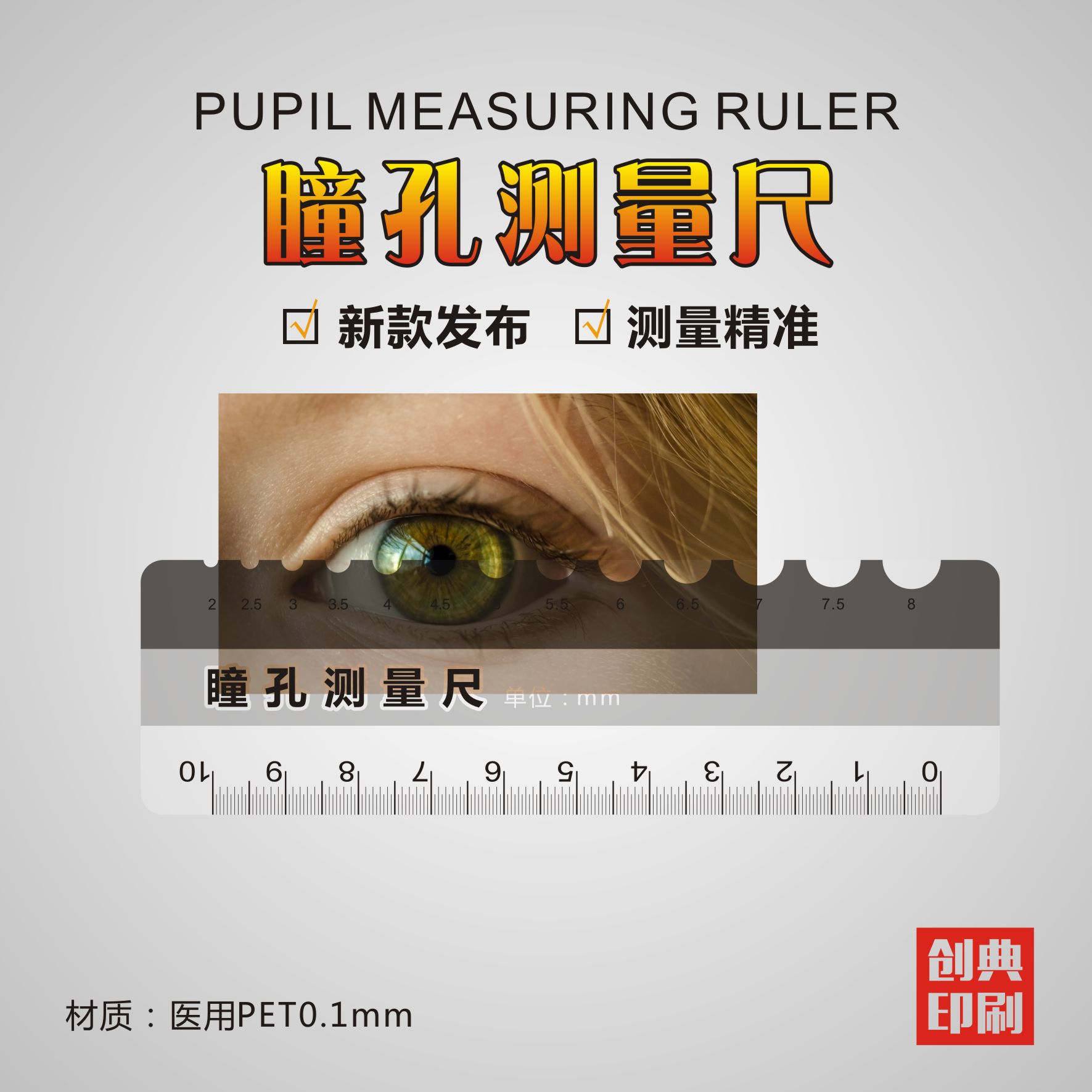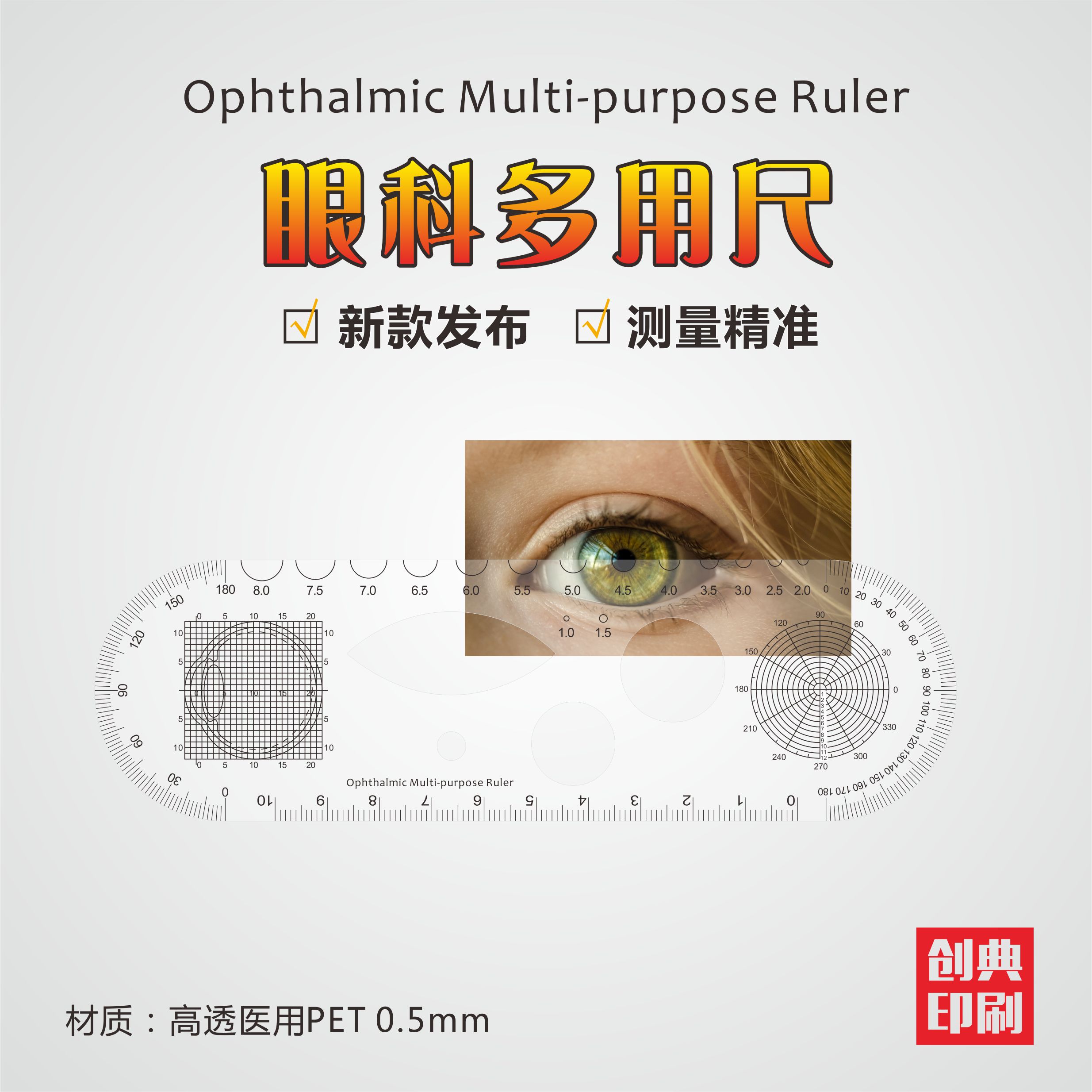 现货医用ICU透明瞳孔测量薄尺简明眼科多用厚/薄评估尺支持定制