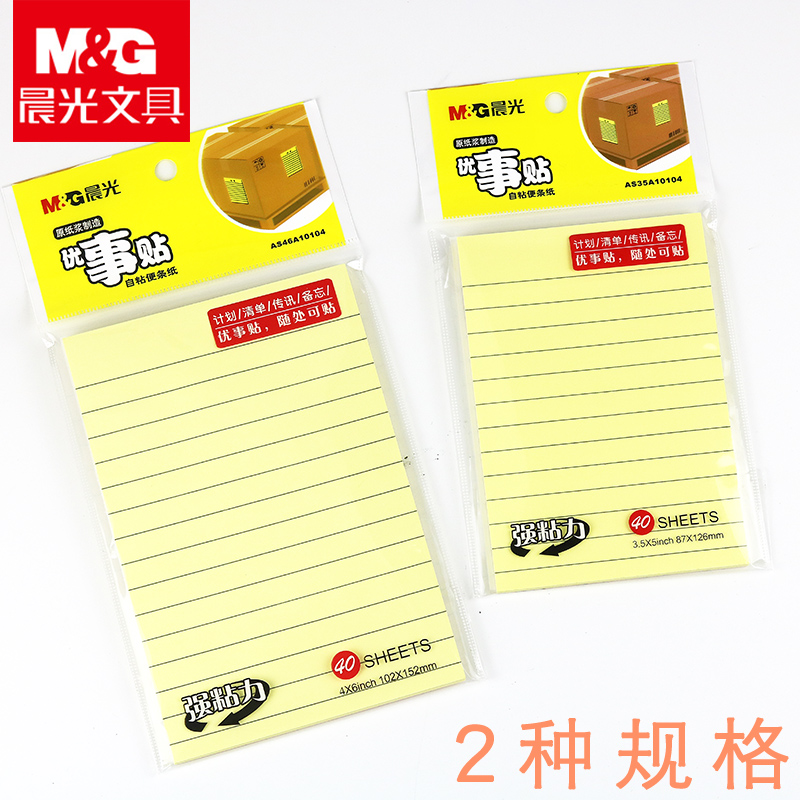 晨光便利贴纸自粘便签纸横线优事贴大号N次随意便签贴可撕告示贴可爱韩国小清新小本子留言便签纸备忘记事贴