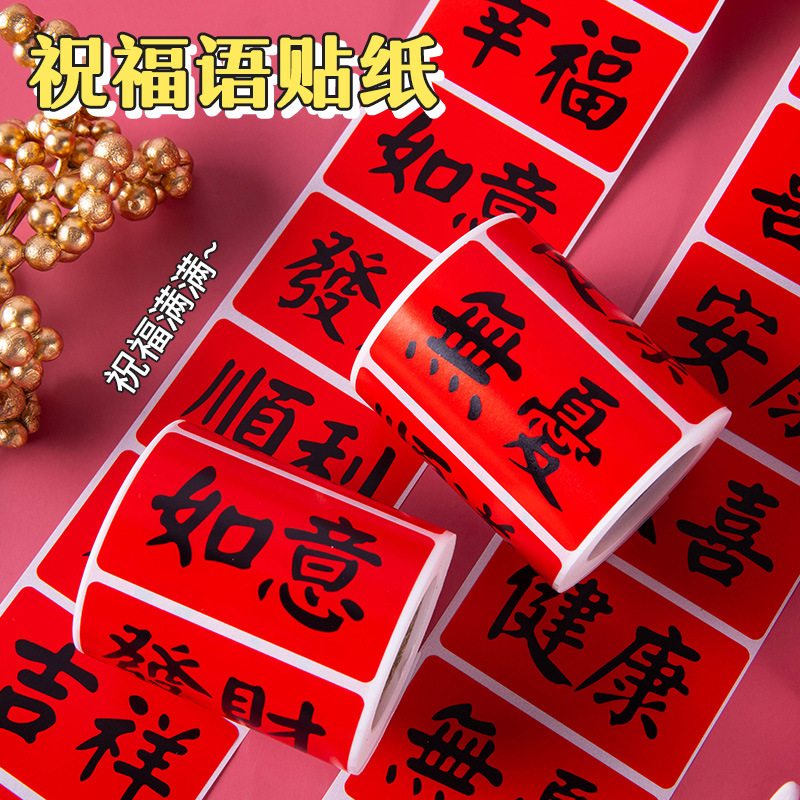 中式祝福文字贴纸零食包装好运寓意发财大吉福字贴入宅乔迁新家喜庆氛围装饰墙贴新年礼品信封红包封口标签贴