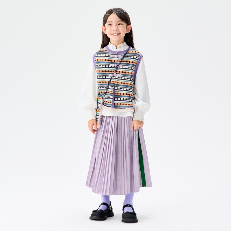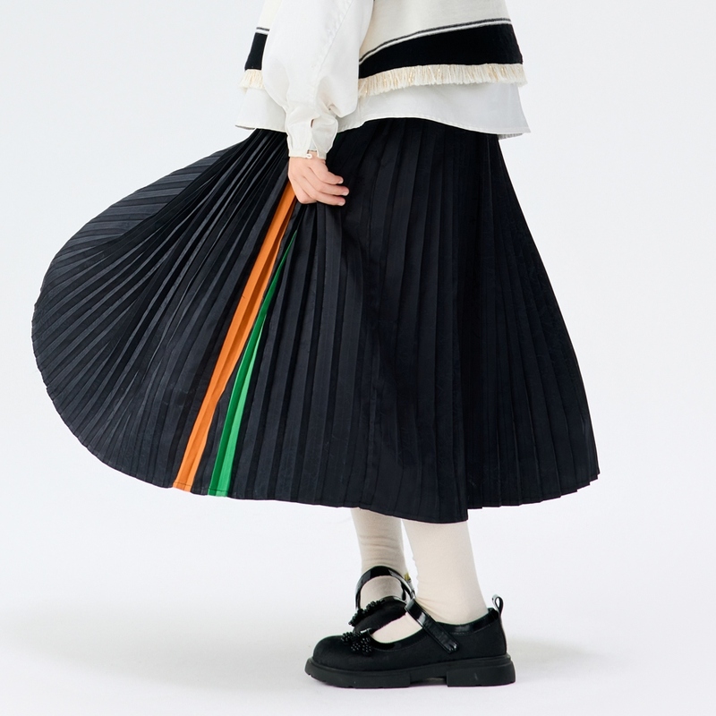 【浮光百褶裙】马拉丁彩虹的诗腰裙秋女大童提花条撞色百褶裙