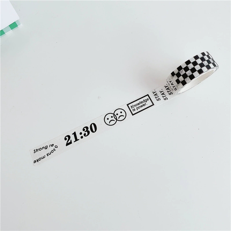 满18包邮韩国ins风和纸胶带黑白简约英文棋盘格手账素材贴纸胶带