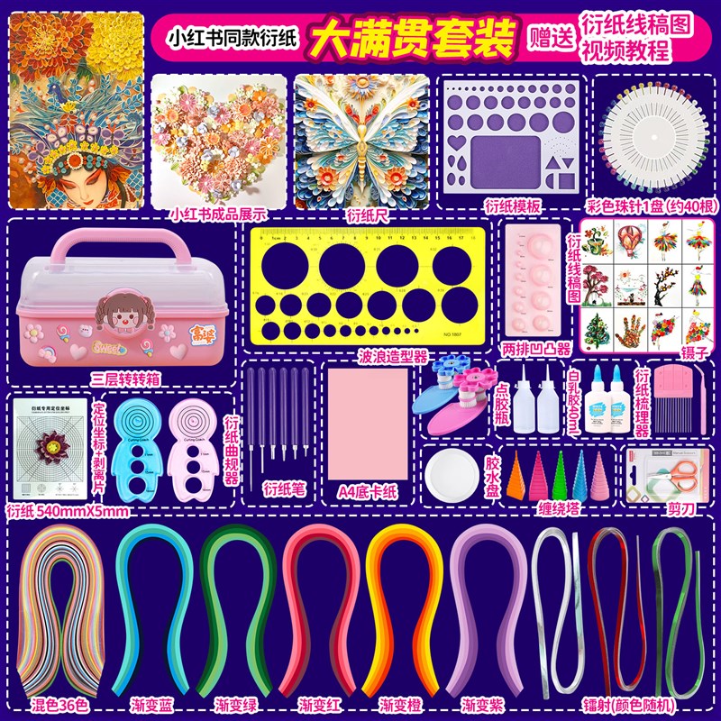 热销衍纸套装工具材料包初学者DIY手工制作学生衍纸画线稿图渐变