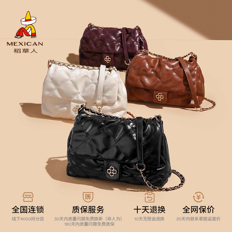 稻草人包包2025新款时尚单肩包小香风链条包大容量百搭通勤斜挎包