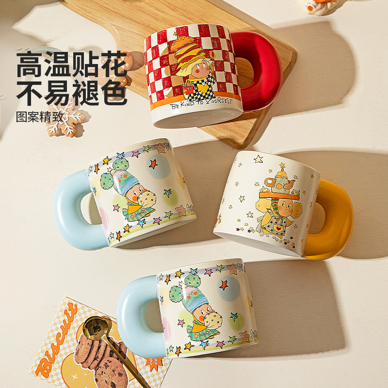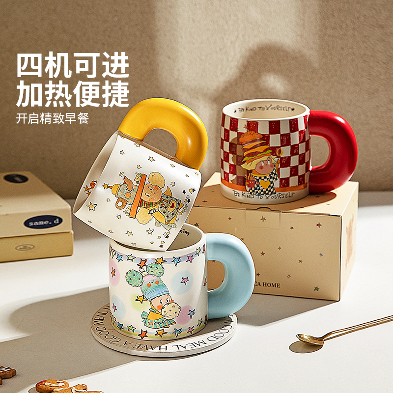 趣皿可爱陶瓷杯卡通马克杯家用办公室大容量咖啡杯情侣水杯牛奶杯