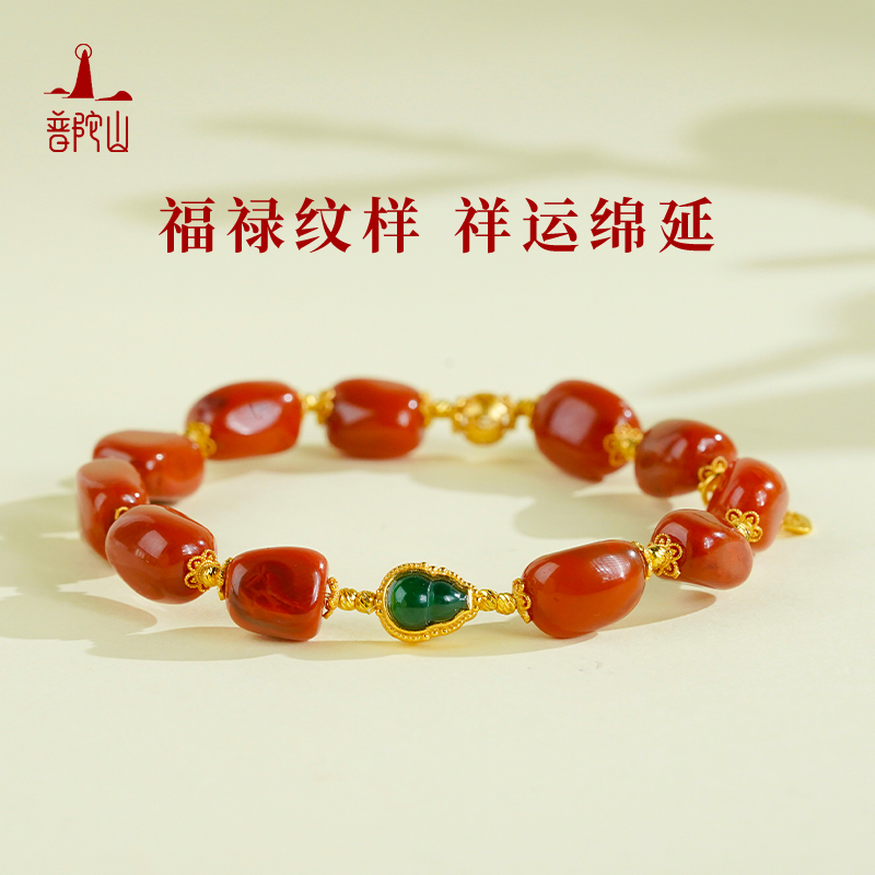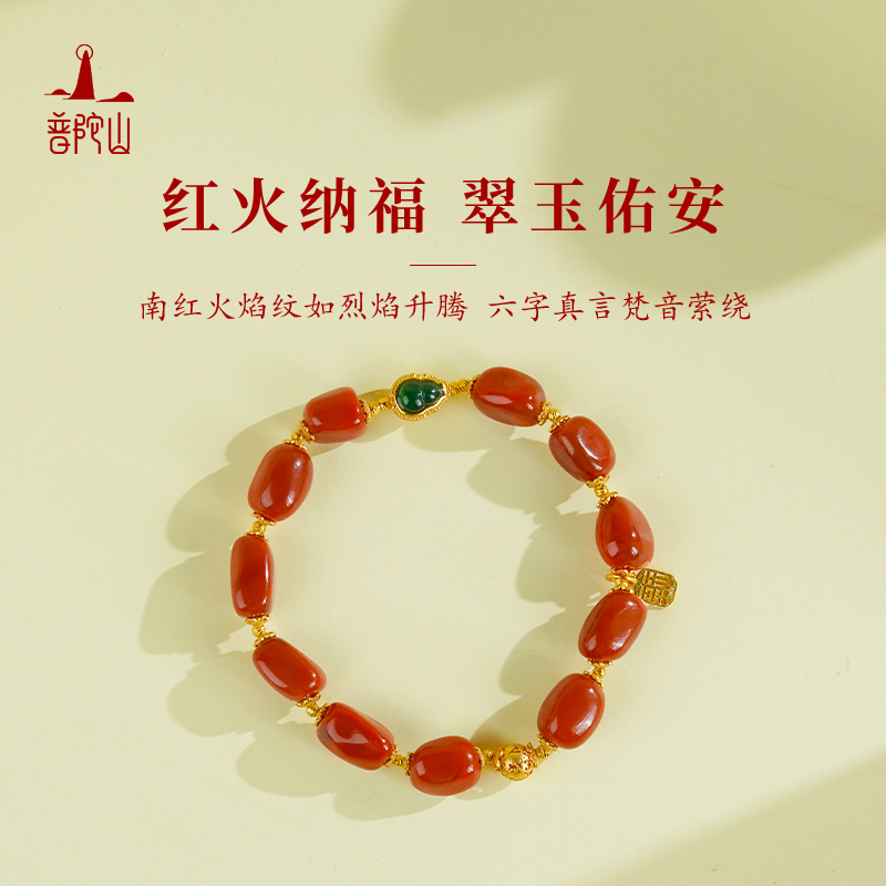普陀山天然南红火焰纹手串翡翠福禄转运珠手链女款本命年礼物
