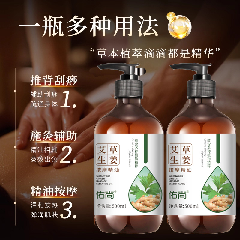 生姜艾草精油发热开背按摩精油刮痧推背全身体推拿油舒通经络免洗