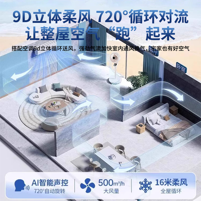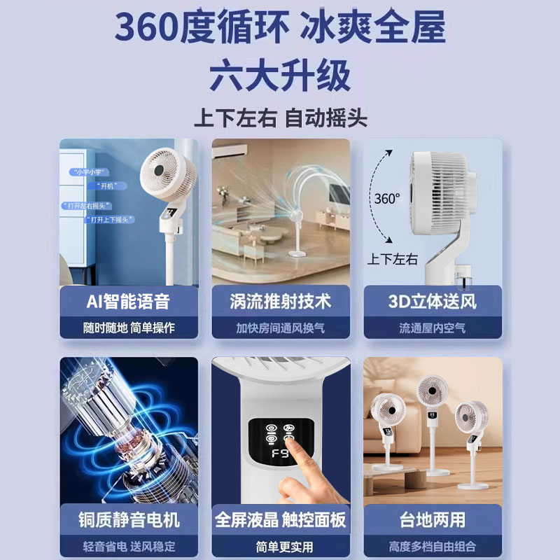 遥控空气循环扇落地扇2025语音电风扇轻音新款静家用节能智能电扇