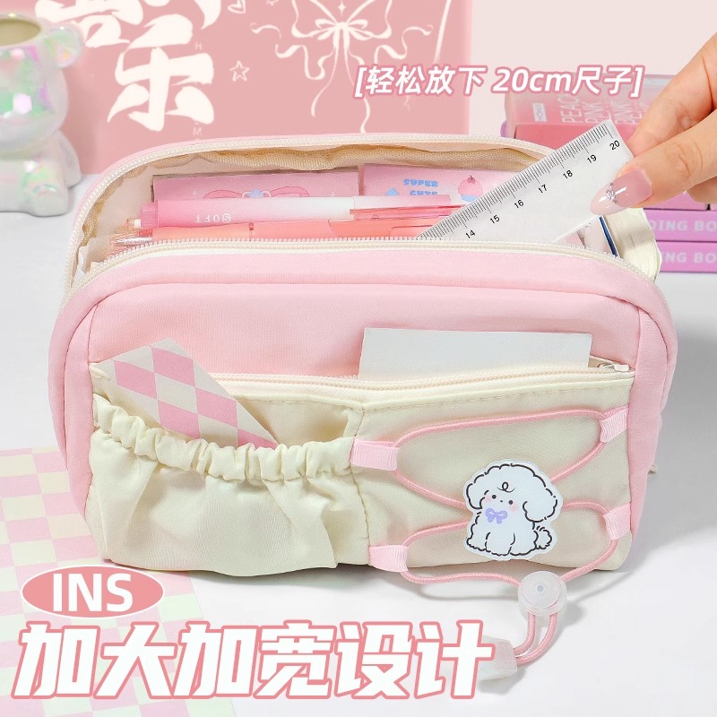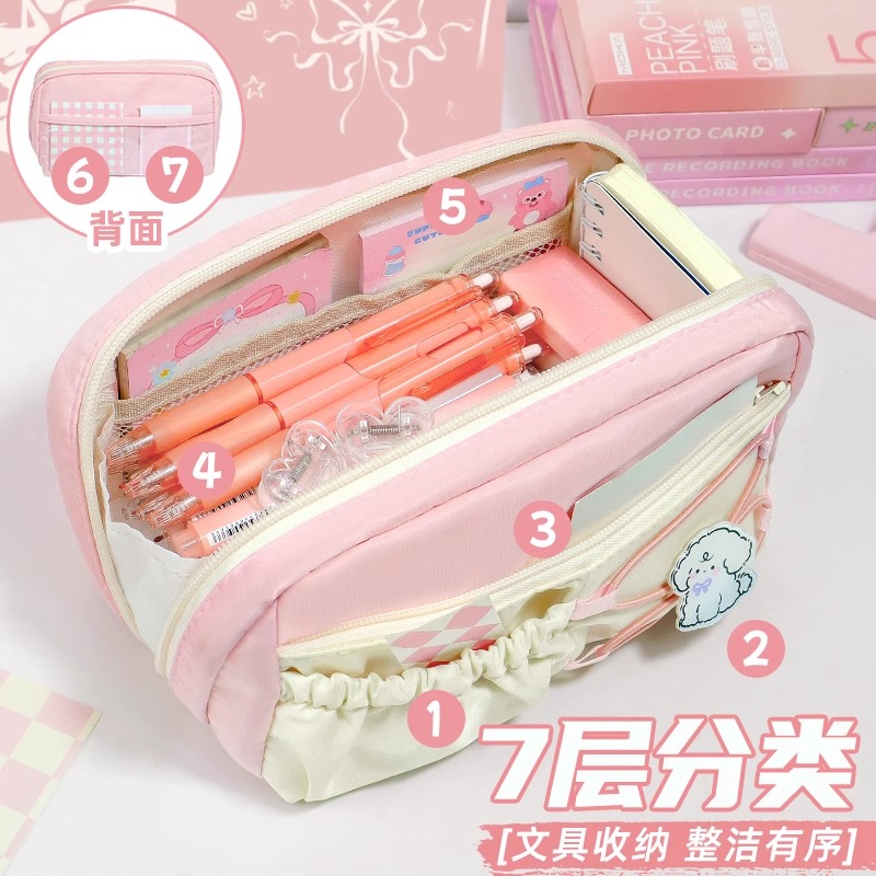 春日樱花笔袋粉色高颜值ins风文具盒学生款女孩用儿童学习铅笔盒2025年新款7层大容量分区透明文具袋初中生