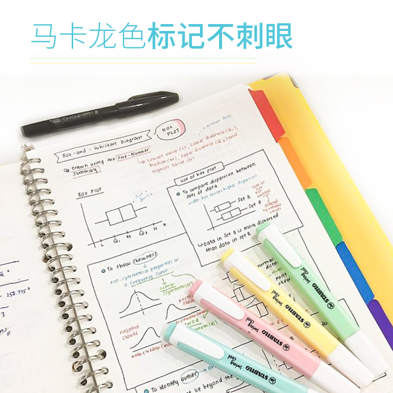 德国STABILO思笔乐275荧光笔小学生用马卡龙色记号笔彩色纤维标记