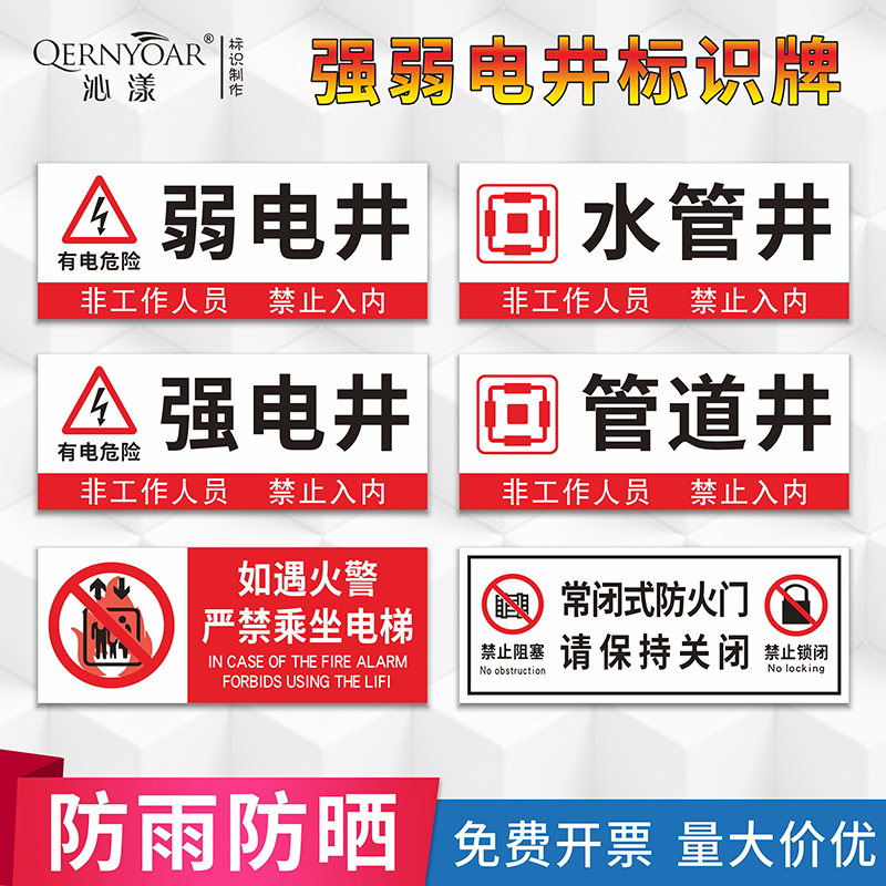 强电井弱电井标识牌 消防水管井管道井标示贴 如遇火警乘坐电梯提示牌 常闭式防火门标志牌 警告指示牌定做