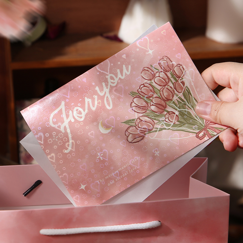生日贺卡教师节创意立体干花手写折叠小卡片纸送女友男生情书情侣浪漫表白情人节礼物花束祝福留言小众明信片