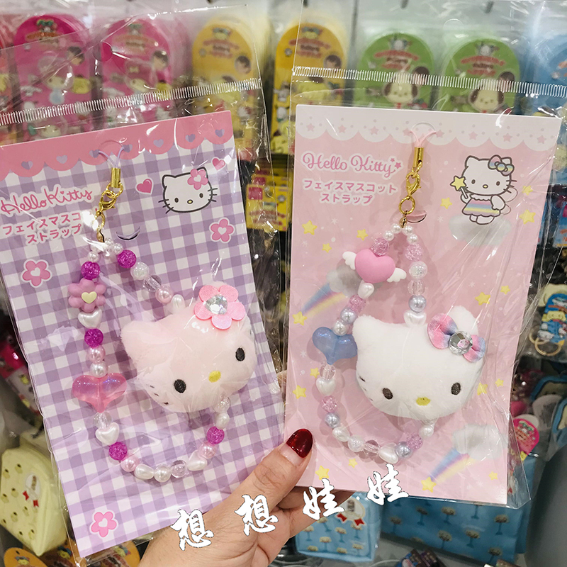 现日本三丽鸥kitty精灵公仔玩偶脸型爱心串珠手机链挂件挂绳包挂