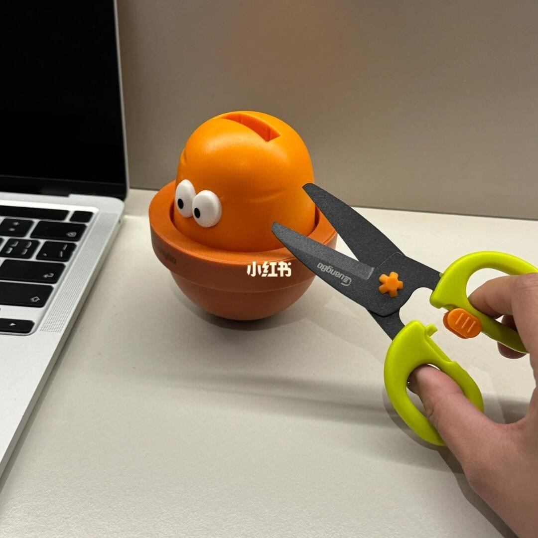 小红书同款不倒翁胡萝卜剪刀安全剪刀办公室桌面摆件圆刀头剪刀