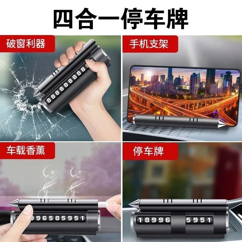 汽车临时停车电话牌手机支架安全锤破窗器四合一多功能挪车号码牌
