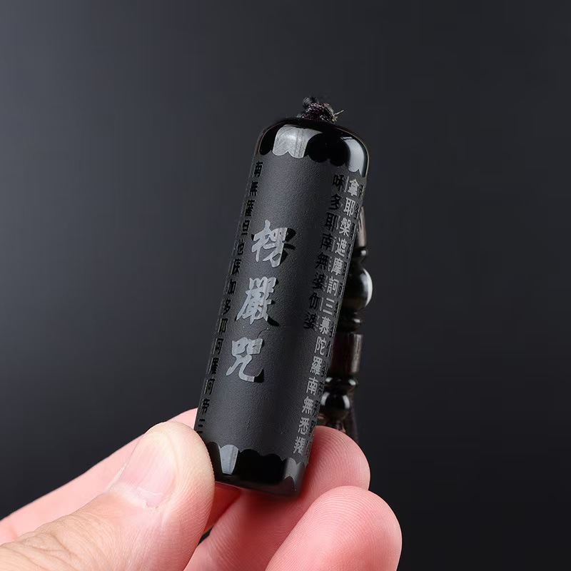 黑曜石经文吊坠心经楞严咒吊坠男女款本命年生日礼物百搭圆柱吊坠