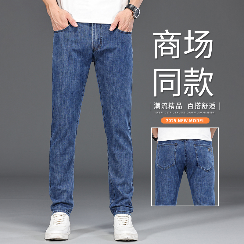 啄木鸟秋季新款牛仔裤男2025新款弹力修身直筒秋天休闲长裤子男款